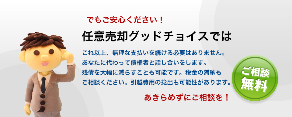 任意売却とは住宅ローンの返済が困難になった時、お金を借りている人(債務者)と 銀行等の金融機関(債権者)との間で売却後の残債務について返済の約束をして債権者の合意を得た上で不動産を売却することをいいます。